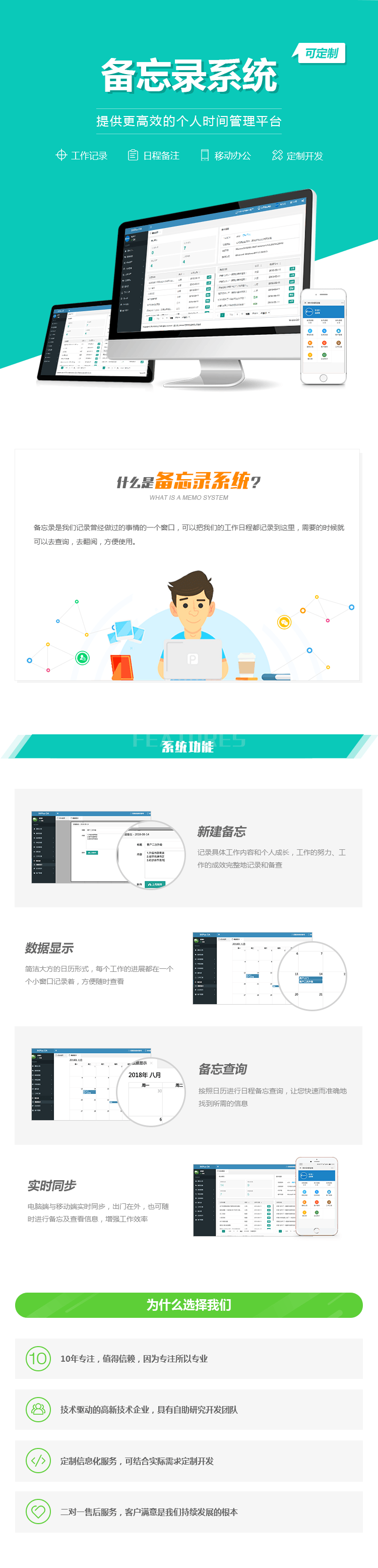 电脑端与移动端实时同步,出门在外,也可随时进行备忘及查看信息,增强工作效率